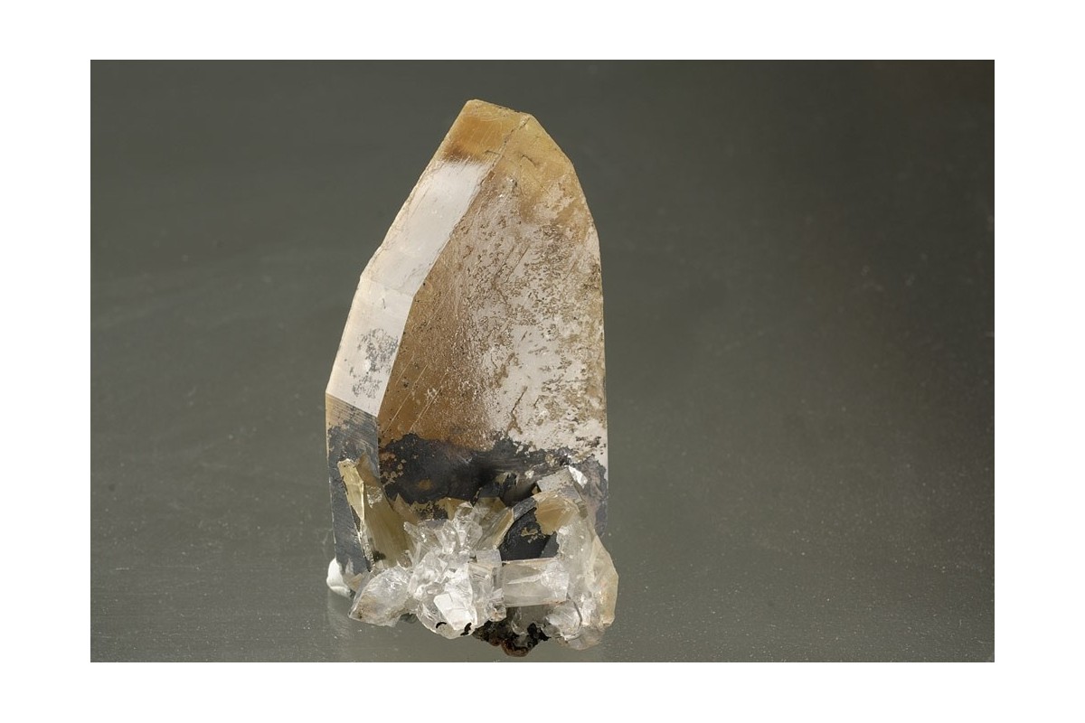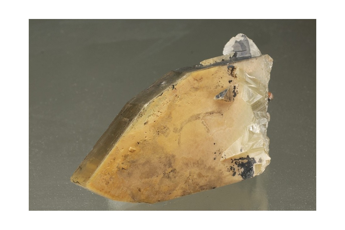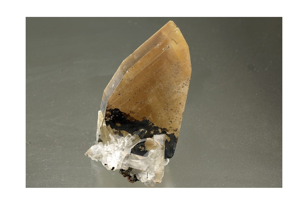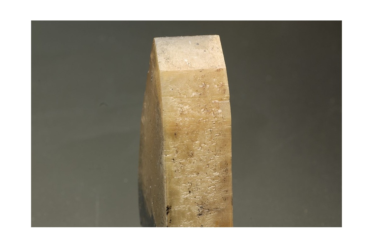 Superb barite crystals of outstanding morphology with two simple parallel sides, the face between composed of several distinct sub faces - 'Meisselspat' or chisel spar from the 1976 find. In oblique light the transparency and zoning of the crystal can be seen.