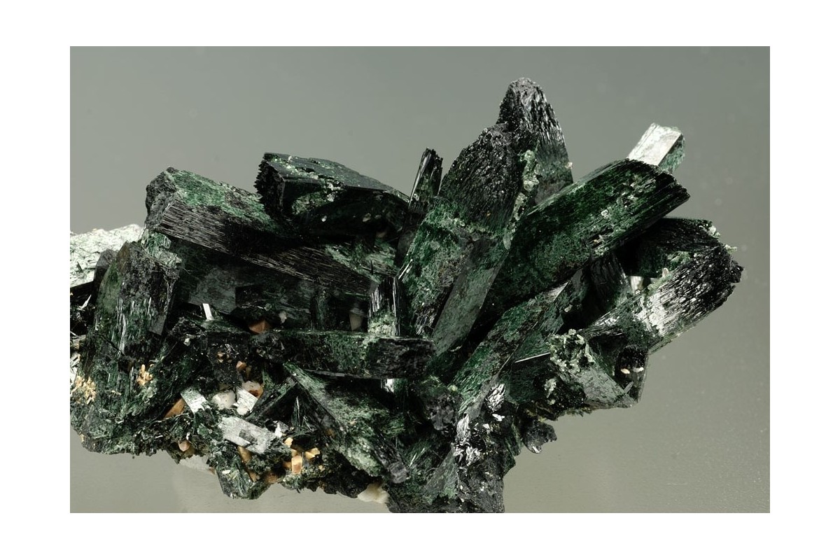 Exceptional specimen, numerous upright interlocking aegirine crystals with mirror bright faces and no damage creating an aesthetically pleasing piece.